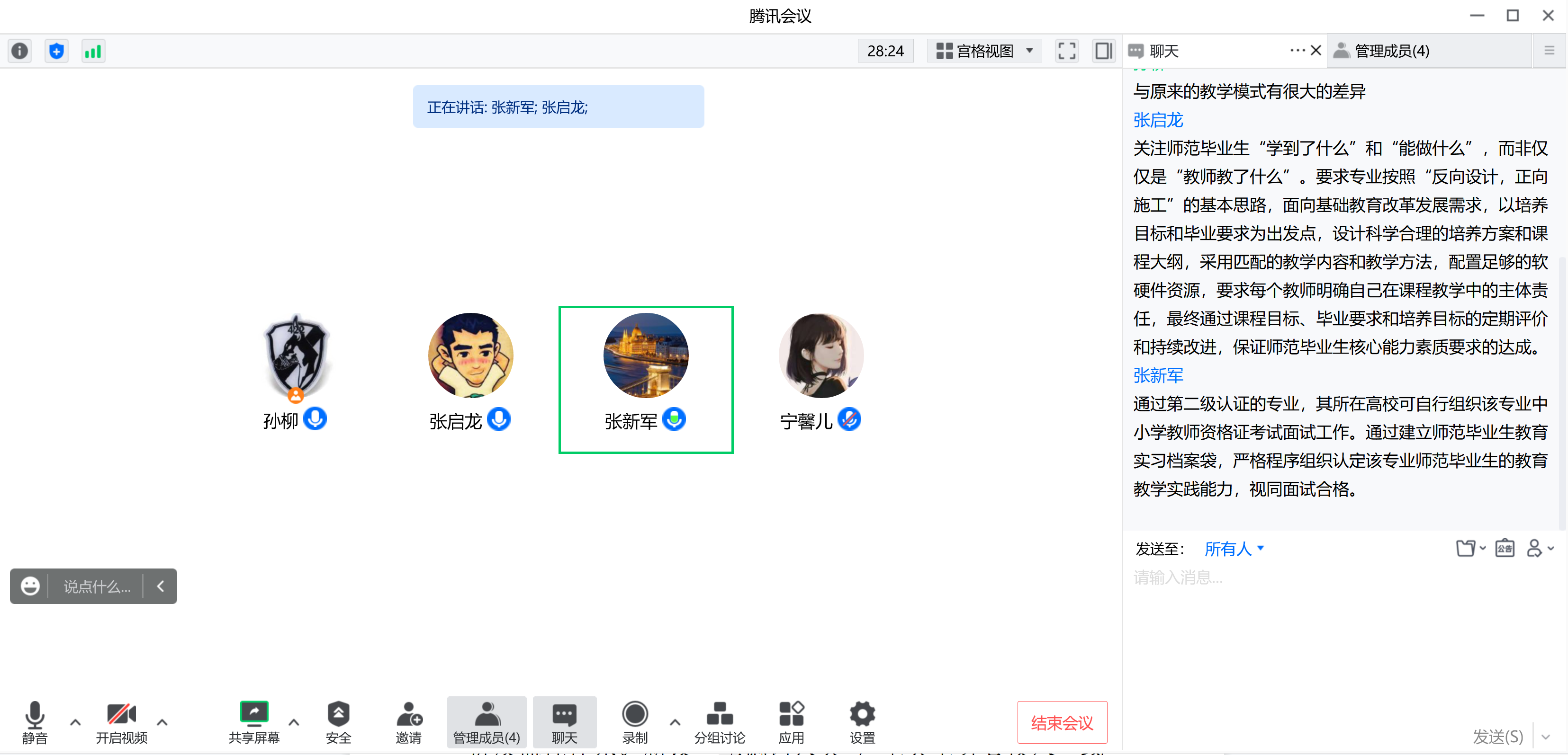 张启龙老师在研读了简明读本中重点和核心后,针对于读本中重点和核心内容谈到了自己的理解和认知,指出师范认证工作坚持“学生中心,产出导向,持续改进”的理念,这也是师范认证工作的行动方针。要实现“反向设计,正向施工”,要以学生毕业以后学到了什么,匹配中学历史教师岗位的需求为目标,设计科学合理的培养方案和课程大纲,采用更为匹配的教学方法和教学内容。最终保证学生师范毕业生核心能力要素达成。