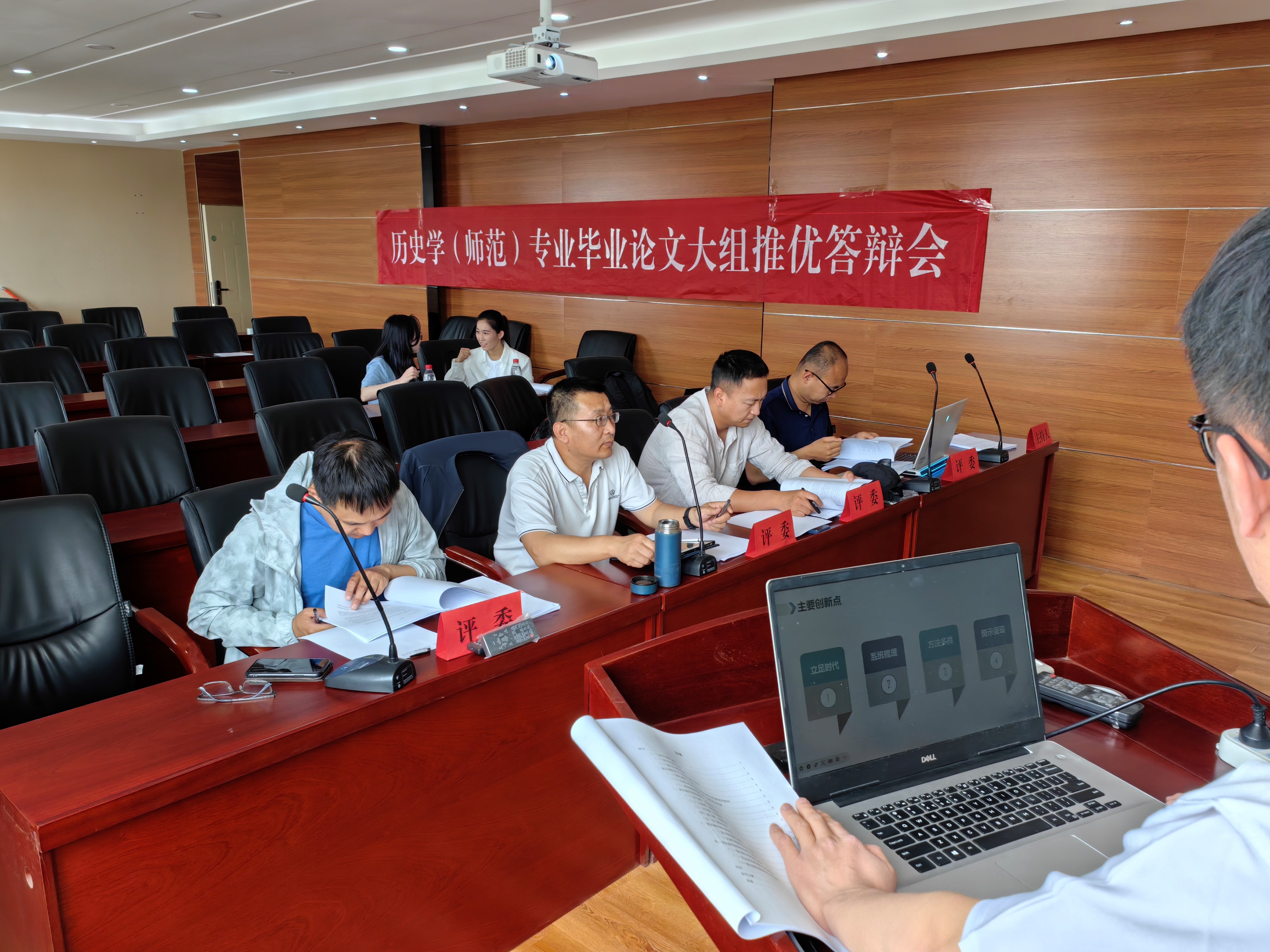 历史系于怀远楼512会议室开展了2024届历史学(师范)专业本科生毕业论文大组推优答辩活动,中国古代史、中国近现代史和世界史三个教研室各推选一名同学参加答辩。张启龙老师主持答辩,王朝海老师、高正亮老师、邓文韬老师、孙柳老师和外聘专家担任答辩委员。
