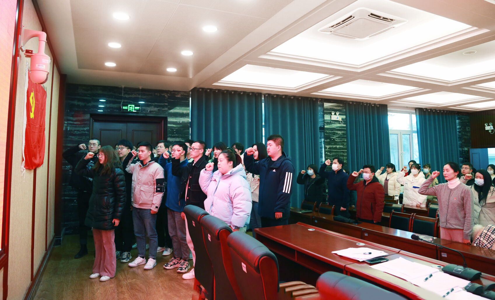 直属党支部书记党锐锋做总结发言。代表支委会向新加入党组织的同志表示祝贺,在中国共产党建党百年的伟大时刻,光荣加入党组织,为我们党组织注入了新鲜血液和有生力量。希望各位同志要以习近平新时代中国特色社会主义思想为指导,深入学习贯彻落实党的十九届六中全会精神,不忘习近平总书记对青年的殷殷嘱托,坚定理想信念,始终坚持做到“两个维护”“四个自信”,不忘青春向党,强国有我的使命。在百年党史学习教育中,加强党性修养,提高政治素养,汲取前进力量,发挥党员先锋模范作用,吃苦在前,享受在后。对照《中国共产党章程》改正自身存在的缺点和不足,以实际行动践行思想上入党和行动上入党,争当新时代优秀青年和合格的共产党员。